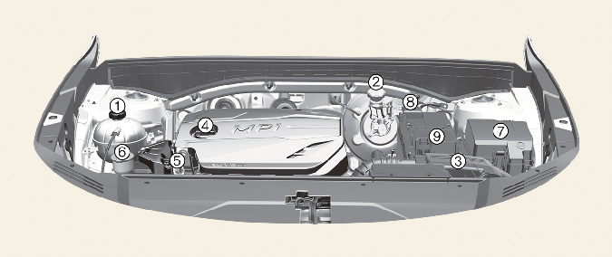* Фактическое моторное отделение автомобиля может отличаться от изображенного на рисунке.
