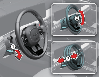 С помощью управляющего переключателя (1) изменяйте угол наклона рулевого колеса (2) и его положение (3).
