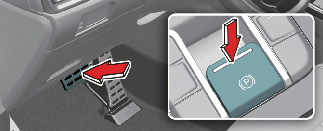 Из соображений безопасности при движении под гору или задним ходом нажмите педаль тормоза и вручную отключите стояночный тормоз с помощью переключателя EPB.