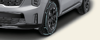 Неправильно подобранные по размеру или неправильно установленные цепи могут повредить трубки тормозной системы, подвеску, кузов и колеса автомобиля. Таким образом, при установке цепей противоскольжения необходимо соблюдать инструкции производителя и устанавливать их с максимальной плотностью посадки. Если у вас установлены цепи или чехлы, двигайтесь медленно (менее 30 км/ч (20 миль/ч)).