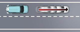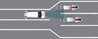 Если впереди идущее транспортное средство выполняет резкий поворот, например поворот налево, направо, разворот и т. п., функция контроля отъезда впереди стоящего автомобиля может работать неправильно.
