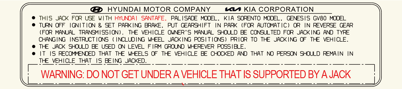 * Фактическая табличка на домкрате в автомобиле может отличаться от изображенной на рисунке. Подробнее см. на наклейке, прикрепленной к домкрату.