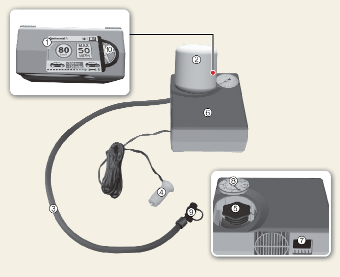 * Разъемы, кабель и соединительный шланг находятся в корпусе компрессора.
