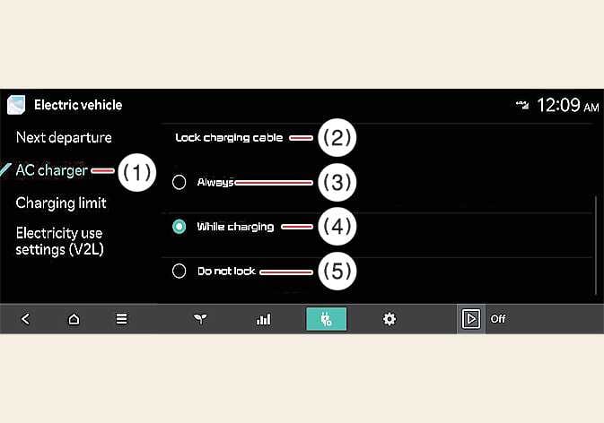 Sie können auswählen, wann der Ladestecker in der Aufladebuchse gesperrt und entsperrt werden kann.