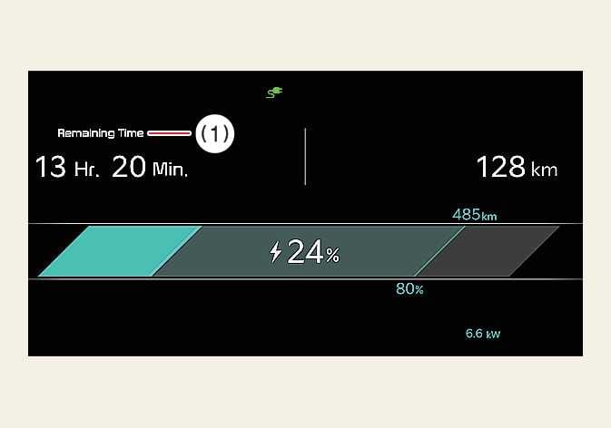 Nach dem Start des Ladevorgangs wird die voraussichtliche Ladezeit für 1 Minute im Kombiinstrument angezeigt.