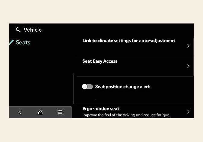 Alarm bei Änderung der Sitzposition: Wenn sich die Sitzposition ändert, werden die Details der Änderung mit einem Bild des Sitzes angezeigt.