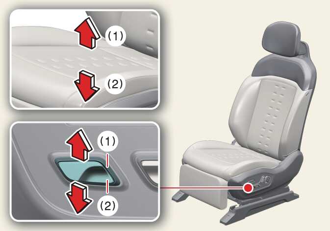 Drücken Sie den Schalter für die Einstellung des Sitzpolsters nach oben(1), um die Kissenstütze anzuheben.
