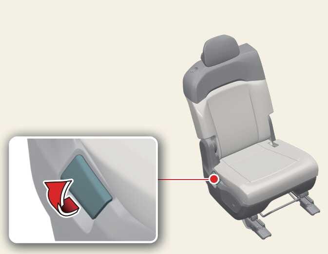 Ziehen Sie den Hebel zur Neigung der Rückenlehne der 2. Sitzreihe, um die Rückenlehne vollständig nach vorne zu klappen.