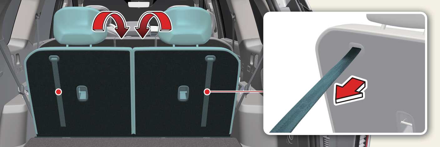 Wenn Sie mit umgeklappter Rückenlehne fahren, sichern Sie die Ladung so, dass sie sich nicht bewegen kann. Es kann zu Unfällen kommen, weil sich Gegenstände beim Anfahren oder plötzlichen Bremsen bewegen.