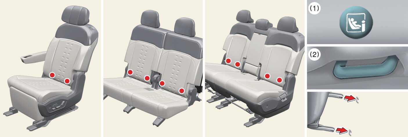 Die äußeren Rücksitze links und rechts sind mit ISOFIX-Ankerpunkten ausgestattet.