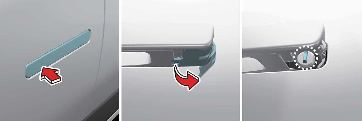 Drücken Sie erneut auf den vorderen Teil des Türgriffs, um den Griff manuell herauszuziehen, und ziehen Sie ihn dann heraus, um die Tür zu öffnen.