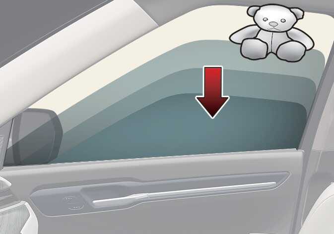 Wenn ein Objekt oder ein Körperteil erkannt wird, stoppen die Fenster und fahren etwa 30 cm (12 Zoll) nach unten.