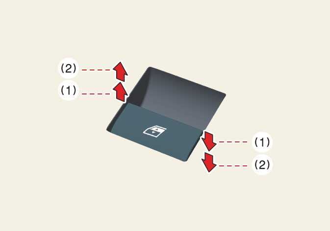 Versuchen Sie niemals einen Fensterheberschalter an der Fahrertür und den Fensterheberschalter der betreffenden Tür gleichzeitig in unterschiedliche Richtungen zu betätigen. Das betreffende Fenster bleibt in diesem Fall stehen und kann nicht mehr geöffnet oder geschlossen werden.