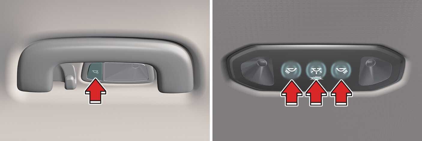 2. Sitzreihe links und rechts: Drücken, um die entsprechende Innenraumleuchte einzuschalten. Erneut Drücken, um die Leuchte auszuschalten.