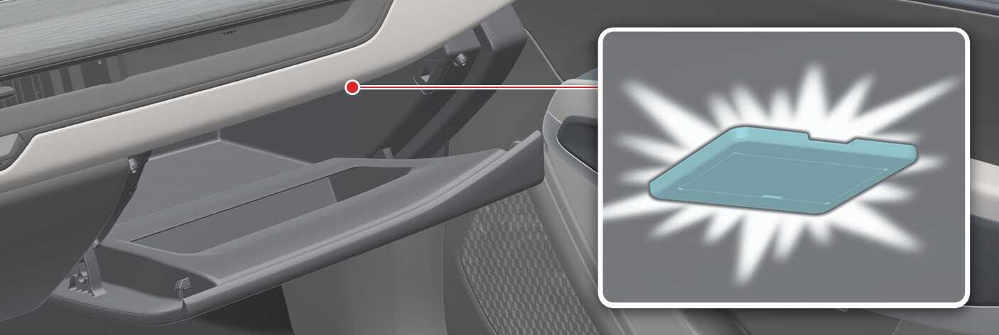 Handschuhfachleuchte OMV054268L Betrieb Die Handschuhfachleuchte leuchtet auf, wenn das Handschuhfach geöffnet wird.