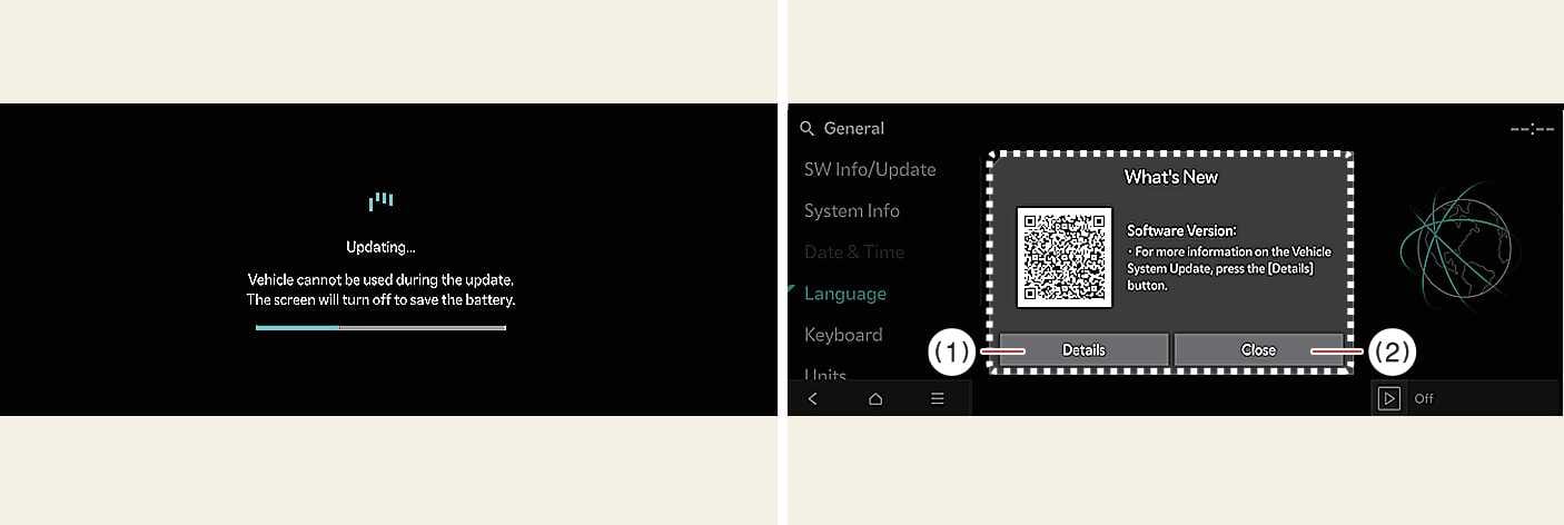 Beachten Sie, dass das Hochspannungsmodul zum Laden der 12V-Batterie während der Softwareaktualisierung aktiviert werden kann.