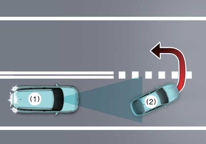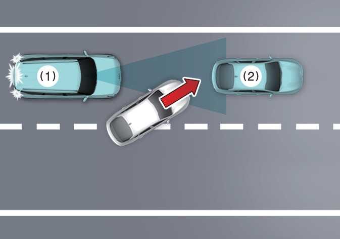 Wenn Sie eine Mautstelle oder eine Kreuzung mit vielen Fahrzeugen passieren oder wenn Fahrspuren zusammengeführt werden oder sich teilen, funktioniert die Warnung Spurwechsel vorausfahrendes Fahrzeug möglicherweise nicht richtig. |