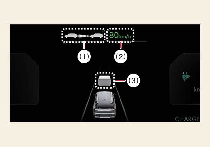 Der Sollabstand kann je nach Fahrzeuggeschwindigkeit und eingestelltem Fahrzeugabstand variieren. Bei niedriger Fahrzeuggeschwindigkeit kann die Änderung des Fahrzeugsollabstands gering sein, obwohl sich der Fahrzeugabstand geändert hat.