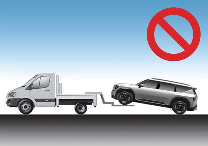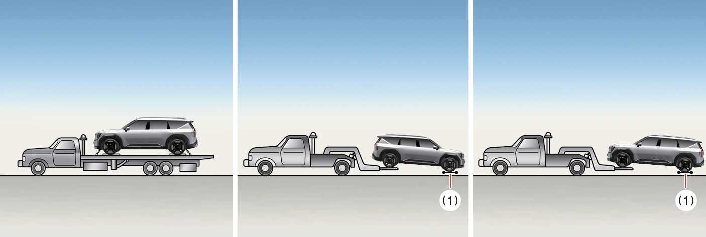 Beim Bewegen Ihres Fahrzeugs zum Aufladen auf einen Abschleppwagen oder zum Umpositionieren zum Abschleppen fahren Sie mit einer Geschwindigkeit von 5 km/h oder weniger über eine Strecke von 10 m oder weniger.
