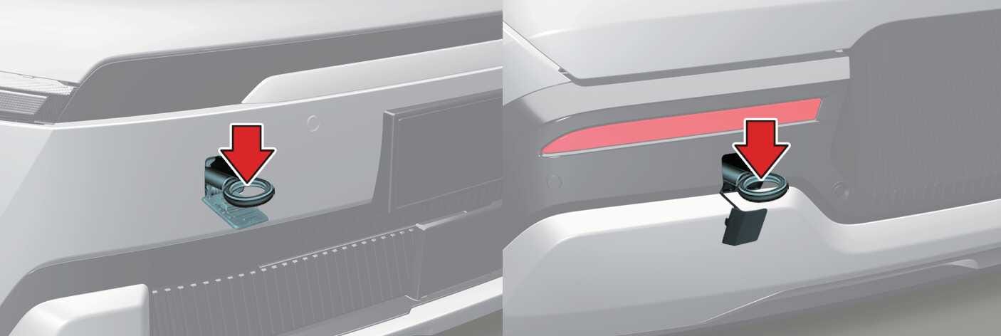 Um die Abschleppöse nicht zu beschädigen, ziehen Sie nicht von der Seite oder in einem vertikalen Winkel. Ziehen Sie immer geradeaus.