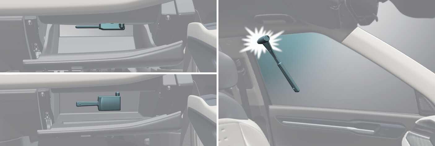 So verwenden Sie einen Nothammer, um das Fahrzeug im Notfall zu verlassen (ausstattungsabhängig)
