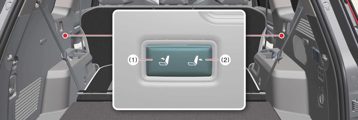 Drücken Sie den Schalter zur Einstellung der Rückenlehnenneigung der 3. Sitzreihe links und rechts an der Seitenverkleidung der 3. Sitzreihe.