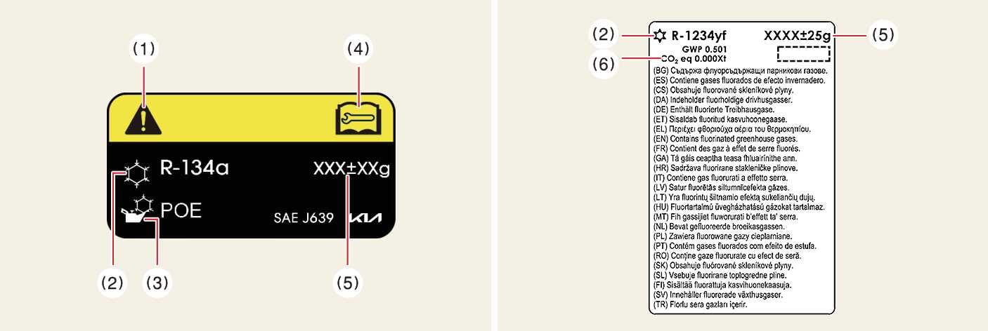 Kennzeichnung des Kältemittels für die Klimaanlage