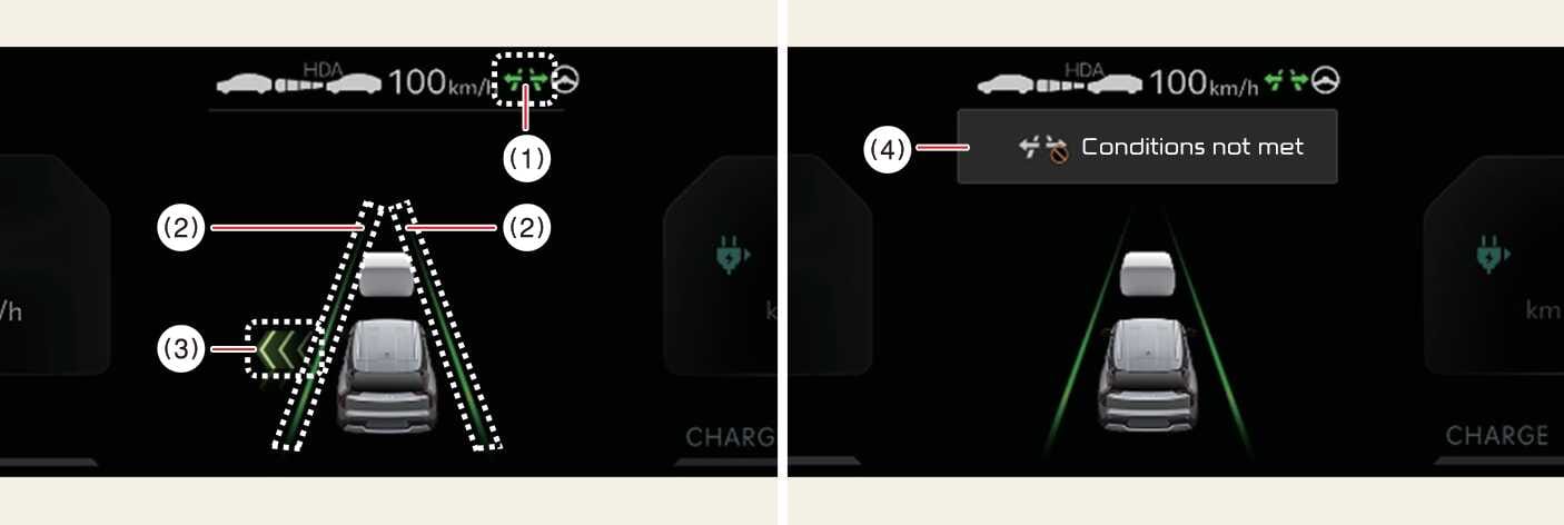 Je nach Status der Funktion wird die Autobahn-Fahrspurwechselhilfe wie folgt angezeigt.