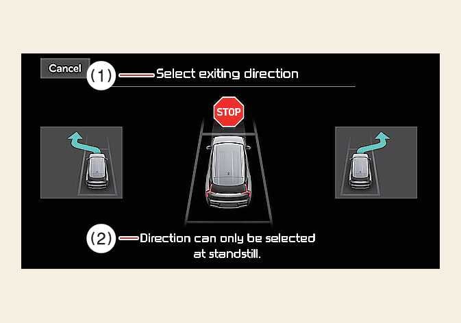 Berühren Sie den Bildschirm des Infotainment-Systems, um die gewünschte Ausparkrichtung auszuwählen.