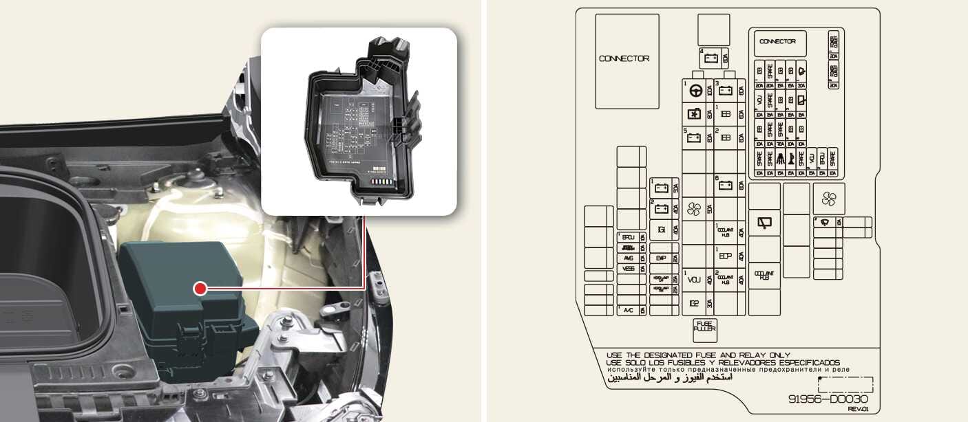 ICU-Verbindungsblock (Sicherung: CHILD LOCK, AFCU, TAILGATE OPEN, EPCU 3, MODULE8, S/HEATER FRT, SUNROOF1, P/WINDOW LH, AMP, P/WINDOW RH, P/SEAT DRV, P/SEAT PASS, S/HEATER RR) |