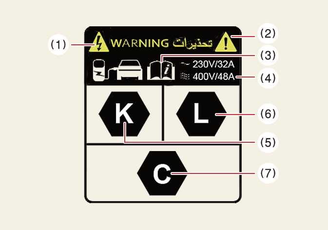 Prüfen Sie nach Öffnen der Ladeklappe das Ladesymbol unten auf dem Warnschild.