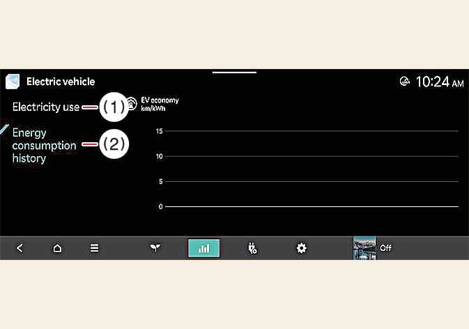 It is possible to check the history of energy consumption with the date and distance of previous driving. The icon is displayed on the most efficient energy economy record.