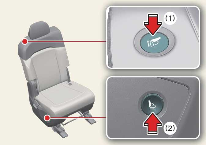 When you press the walk-in switch (1 or 2), the seatback tilts forward and the seat moves.
