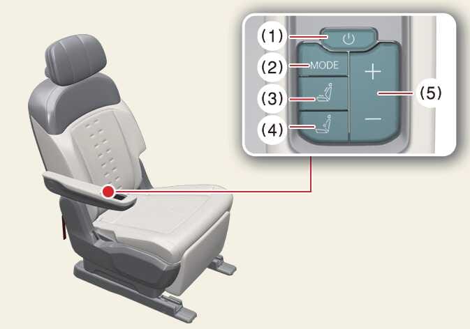 Vibration mode button: Pressing the vibration mode button activates vibration mode on the back and cushion. Press once more to turn off.