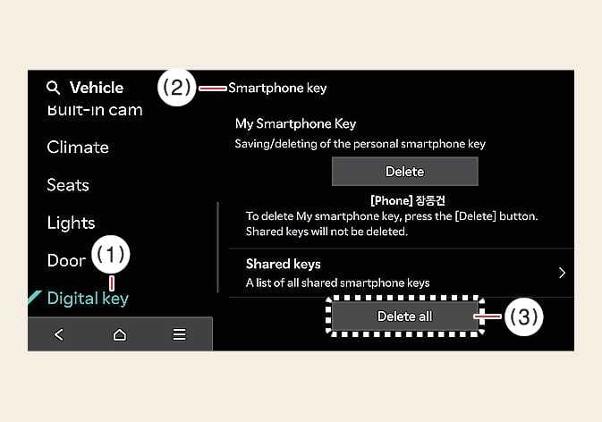 If digital key (smart phone) is deleted, the digital key saved in the smartphone is also deleted.