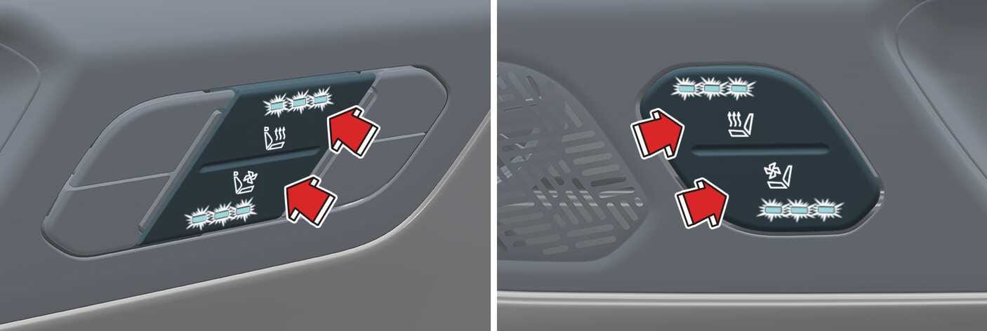 With the seat warmer buttons in the ON position, the heating system in the seat turns off or on automatically depending on the seat temperature.