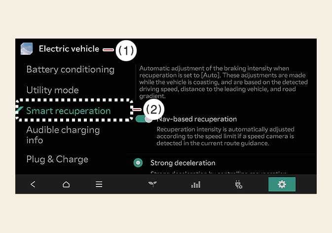 Select Settings > ECO Vehicle > Smart regeneration to adjust the deceleration.