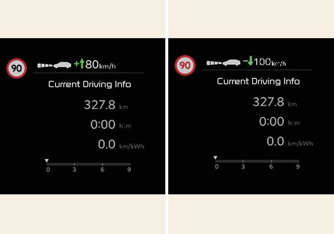 If the speed limit of the road changes during the operation of Manual Speed Limit Assist or Smart Cruise Control, an arrow in the direction of up or down is displayed to inform the driver that the set speed needs to be changed. At this time, the driver can change the set speed according to the speed limit by using the |