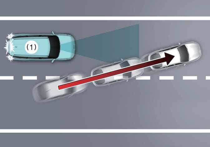 If the vehicle in front makes a sharp turning, such as to turn left or right or making a U-turn, etc., Leading Vehicle Departure Alert may not operate properly. |