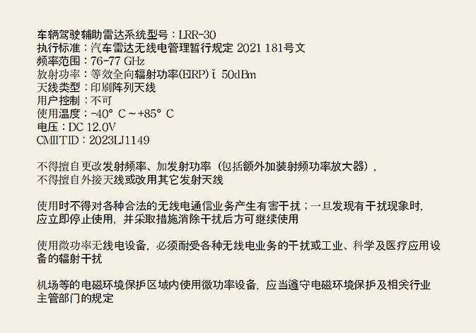 The radio frequency components (Front Corner Radar/Rear Corner Radar) complies (if equipped):