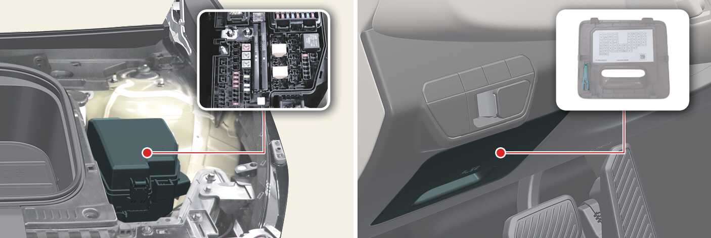 After checking the fuse panel in the motor compartment, securely install the fuse panel cover through the audible clicking sound. If not, electrical failures may occur from water contact.