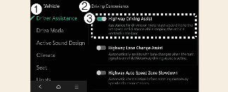If Highway Lane Change Assist is selected, it helps change lanes safely.