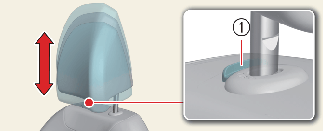 잠금 해제 버튼(1)을 누르고 헤드레스트를 위로 당기십시오.