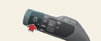 스위치를 클러스터 방향으로 밀어 놓으십시오. 또는 운전자 방향으로 당기고 있으십시오. (클러스터에 주행빔 전조등 표시등( |
