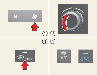 앞유리 서리 제거 버튼을 누르십시오.