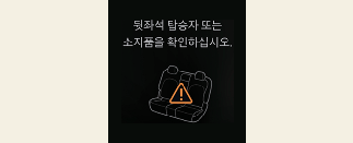 뒷좌석 도어를 열고 닫은 후에 시동을 끄고 운전석 도어를 열면, 클러스터에 경고 메시지가 표시되면서 경고음이 울립니다.