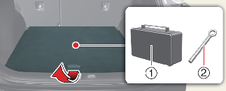 • 타이어 임시 수리 장치 가방 내에 있는 견인후크를 준비하십시오.