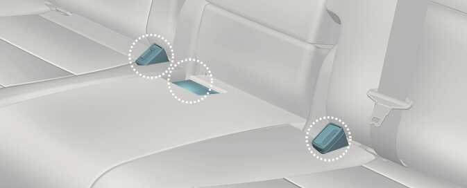 The rear seat belt buckles can be stowed in the pocket between the rear seatback and cushion when not in use.