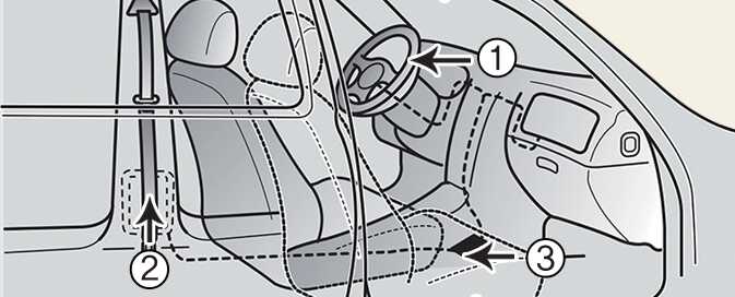 The seat belt pre-tensioner system consists mainly of the following components. Their locations are shown in the illustration:
