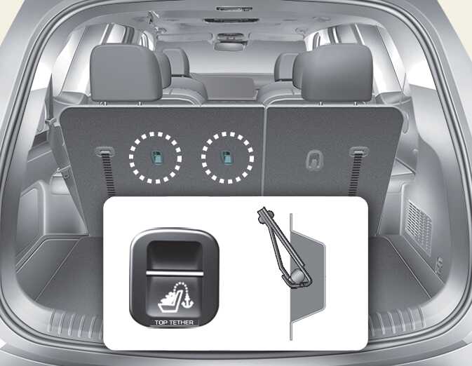 Child restraint hook holders are located on the shelf behind the rear seats.